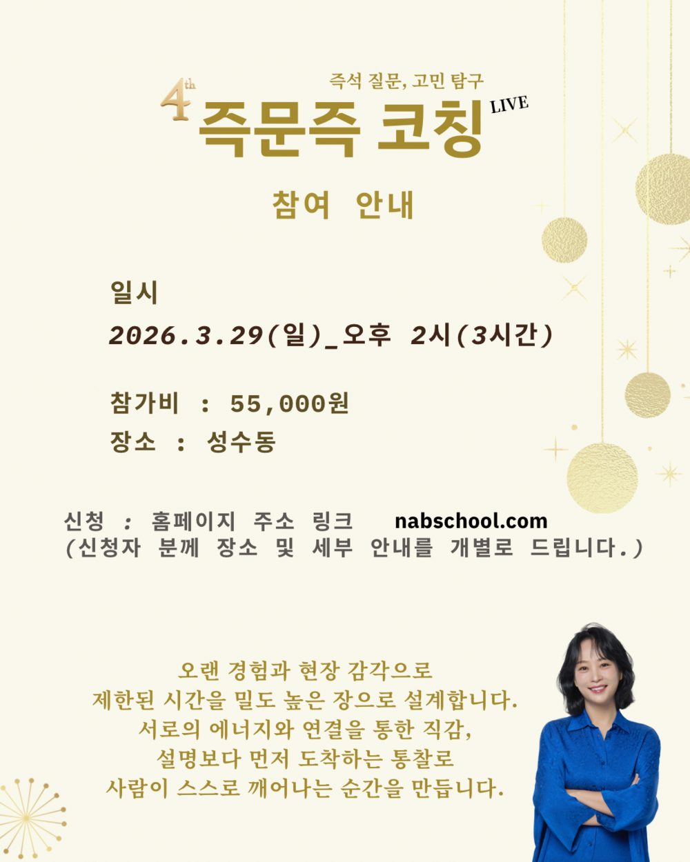 * 제4회 즉문즉 코칭 안내합니다.