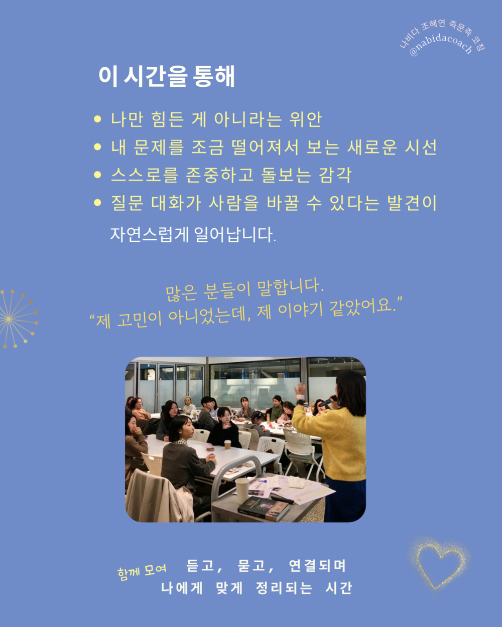 나비다 코치 만이 가능한 특별한 시간많은 분들과 함께 하고 싶습니다.
