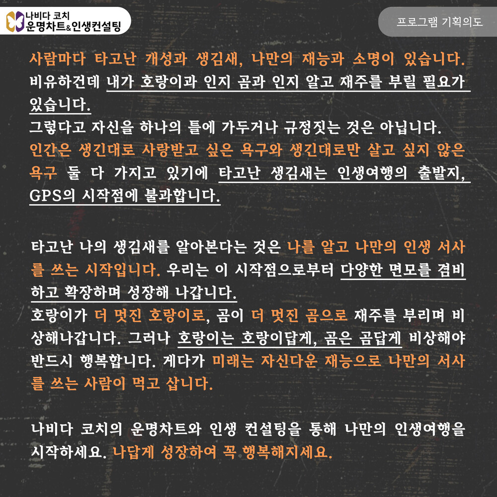 나비다코치 운명차트와 인생컨설팅