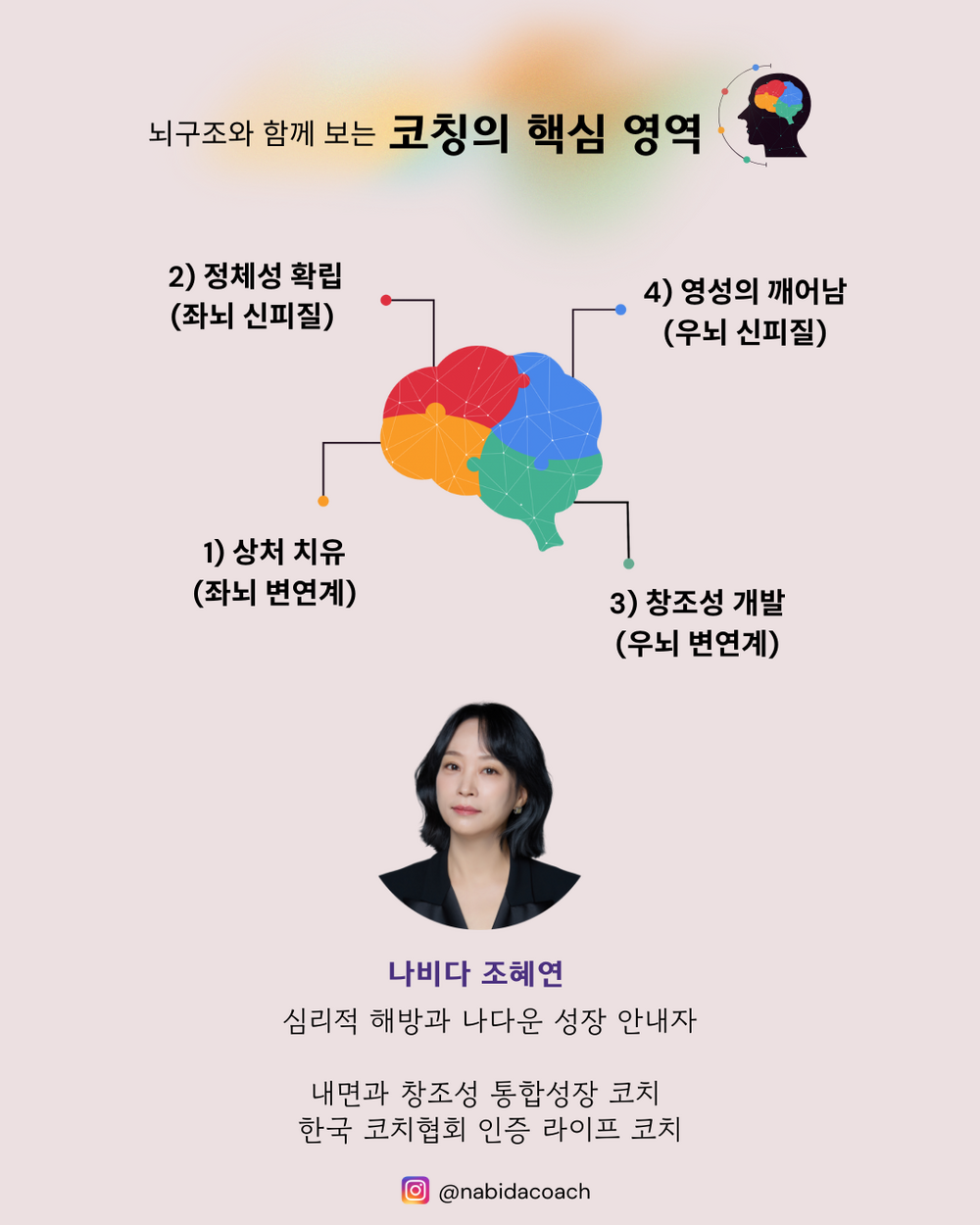 - 전문 코치의 라이프 코칭을 통해 정기적으로 마음을 돌보세요.