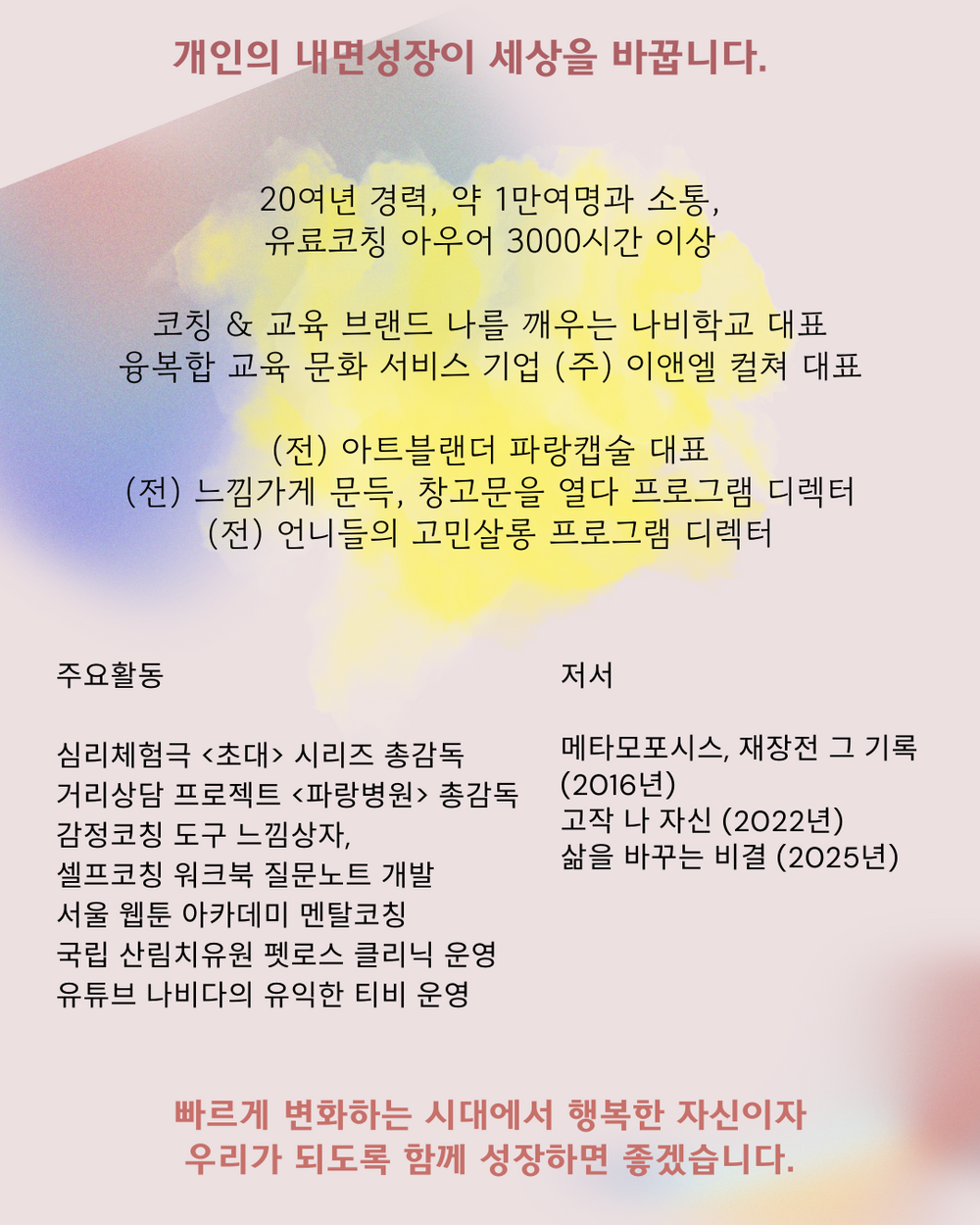 라이프 코칭 - 당신만을 위한 비밀인터뷰선택하세요.삶을 바꾸는 비결 저자와의 온라인 Q&A 30분